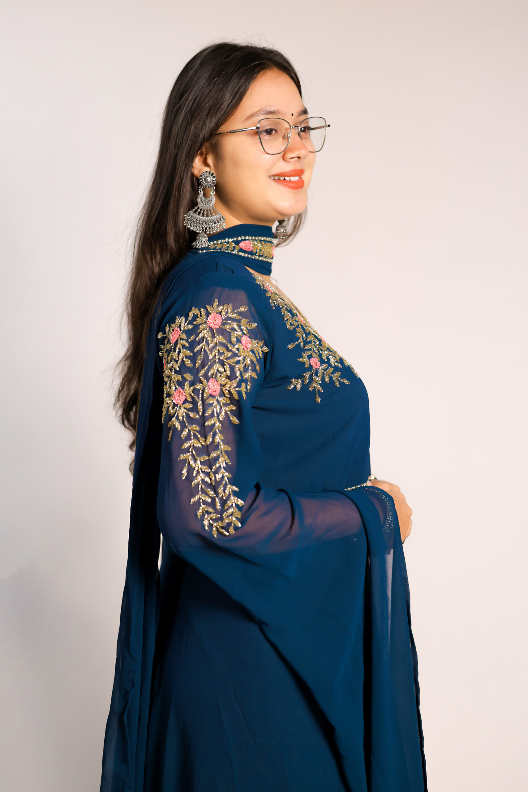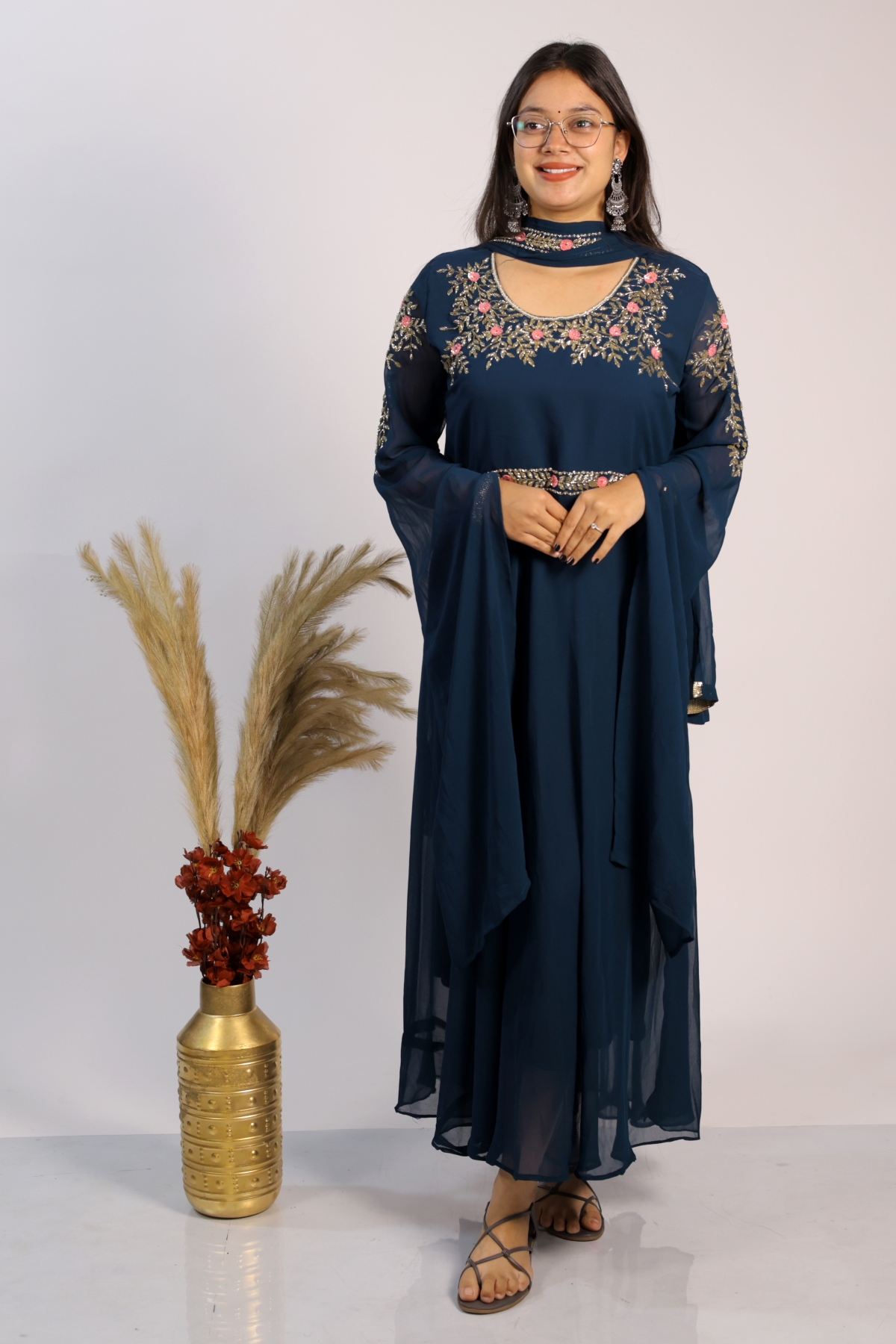 A perfect blend of style and comfort, this Blue Rayon Ankle-Length Gown offers a smooth and elegant flare that enhances every movement. Lightweight, breathable, and beautifully tailored — this gown is ideal for festive functions, casual gatherings, or special outings where you want a stylish yet comfortable look.