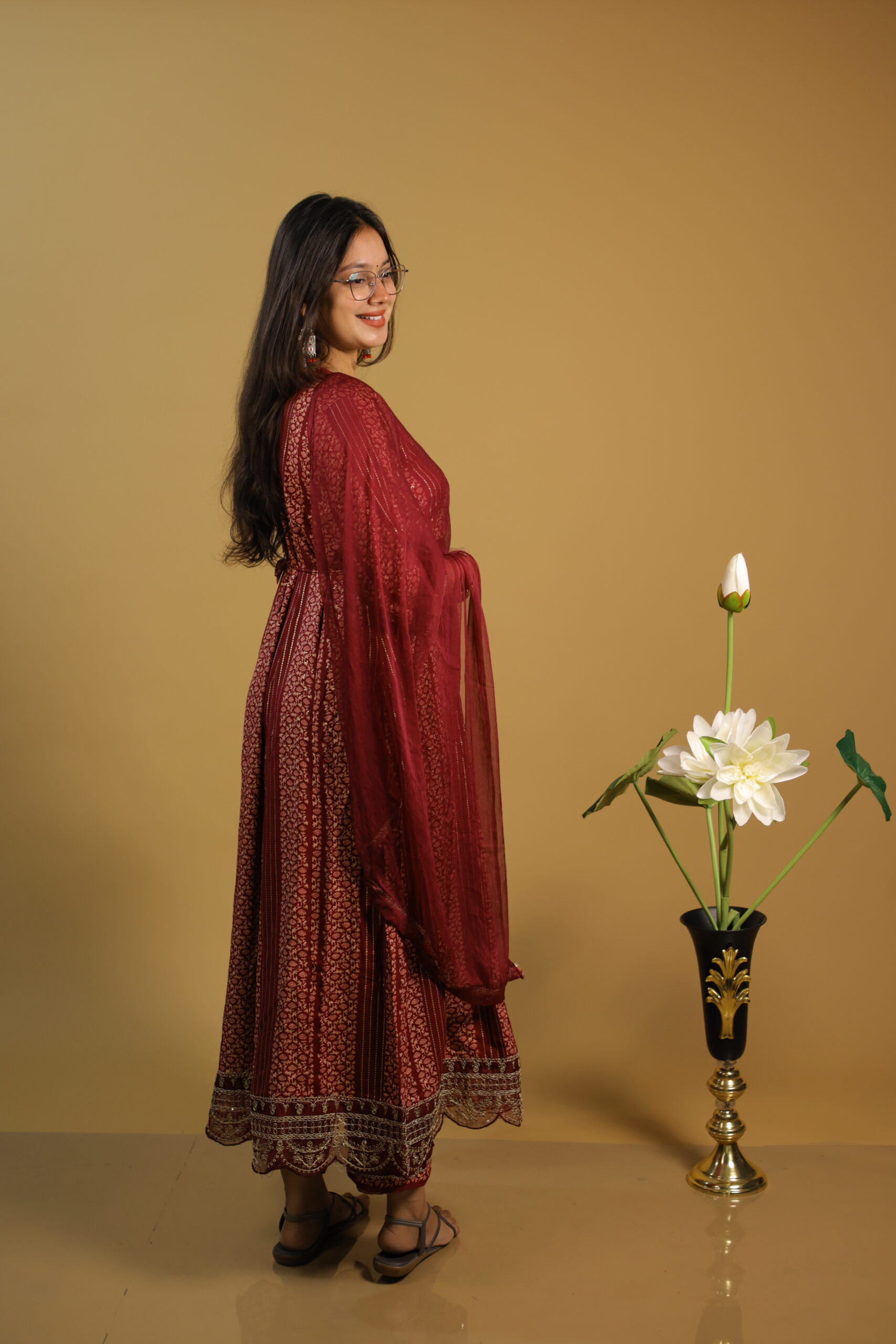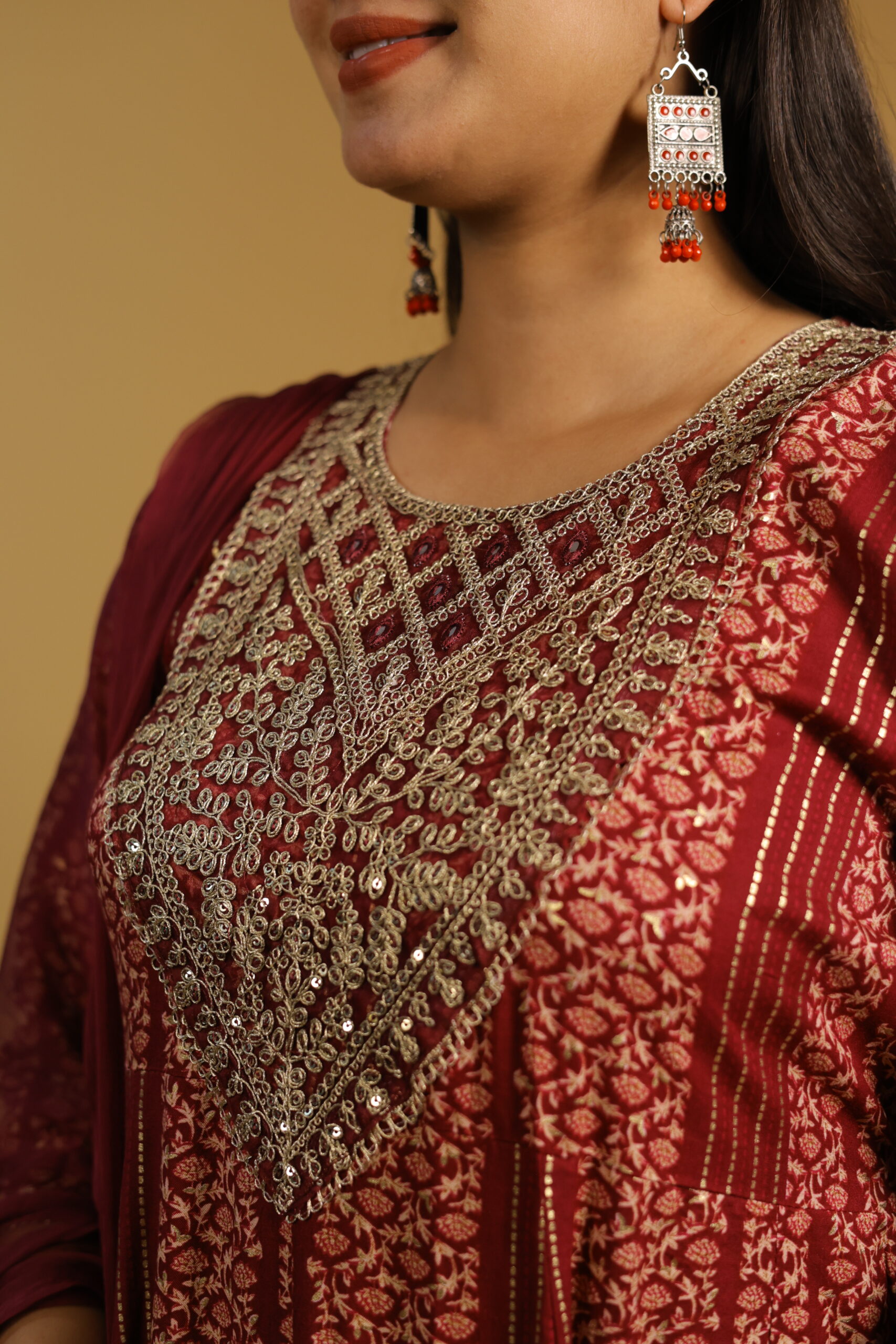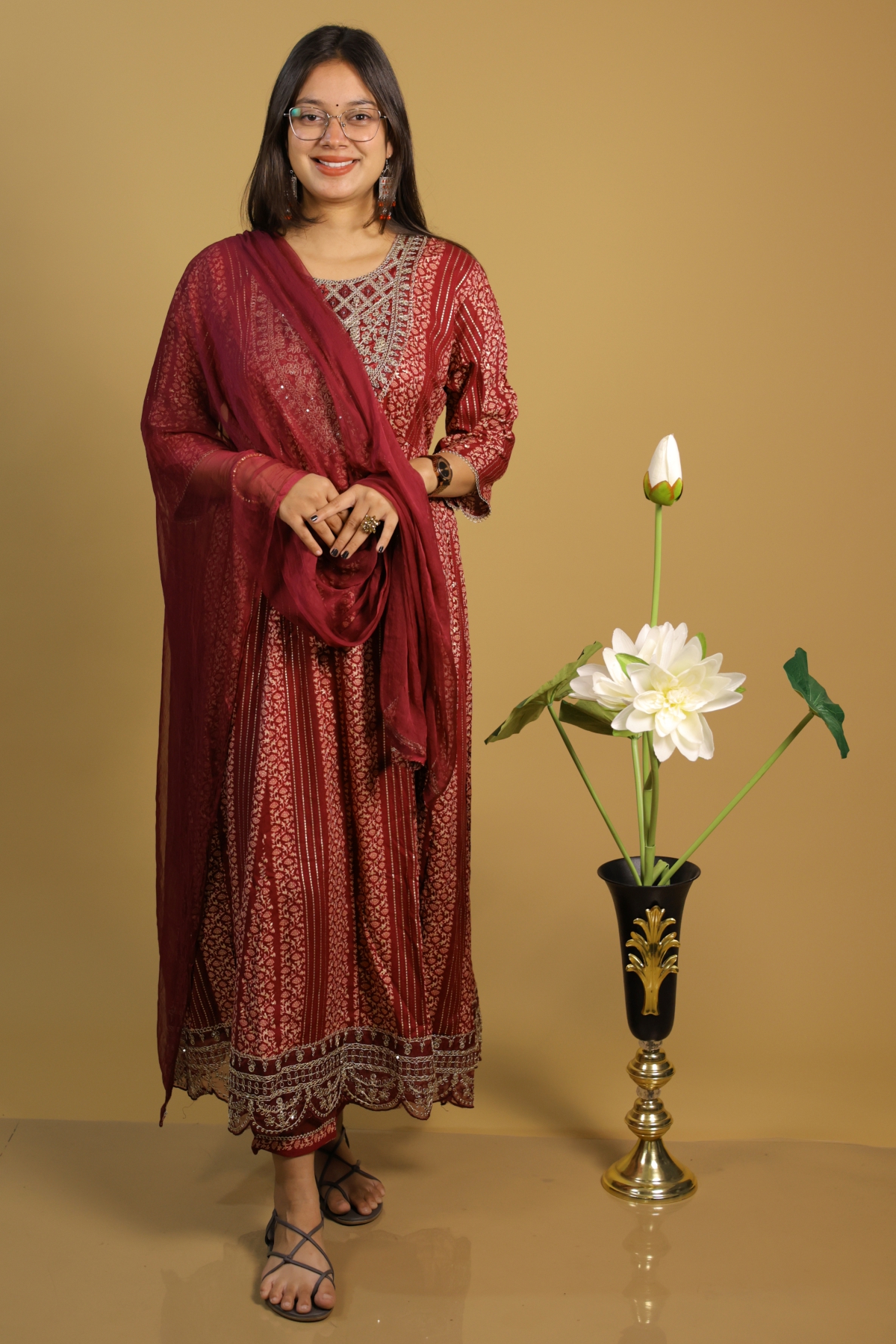 Experience graceful ethnic elegance with this Maroon Embroidered Rayon Salwar Suit. Crafted with beautiful embroidery and a rich maroon tone, this outfit is perfect for traditional gatherings, festivals, and celebrations — offering luxury you can wear all day comfortably.