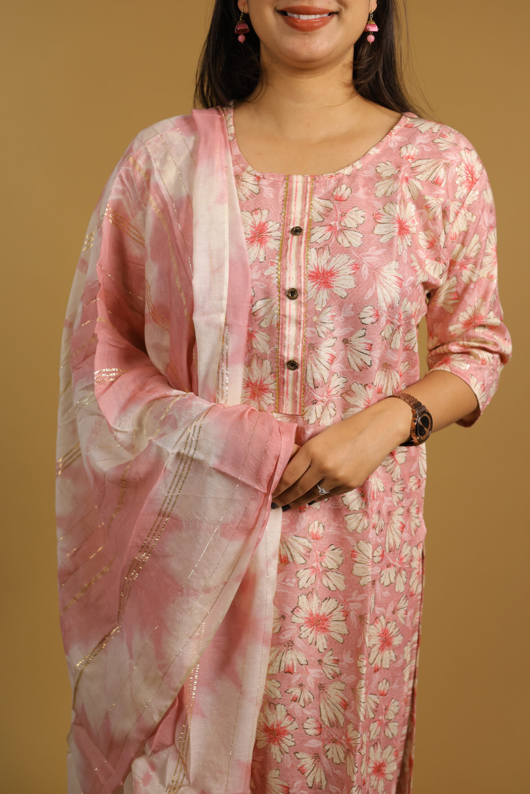 Be the first to review “Pink Floral Print Rayon Kurti Pant Set”